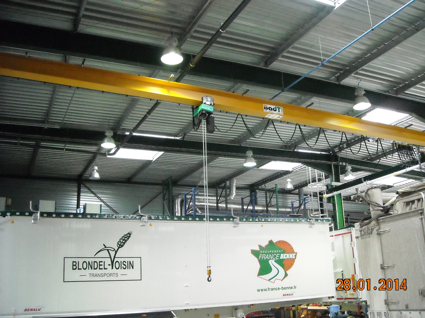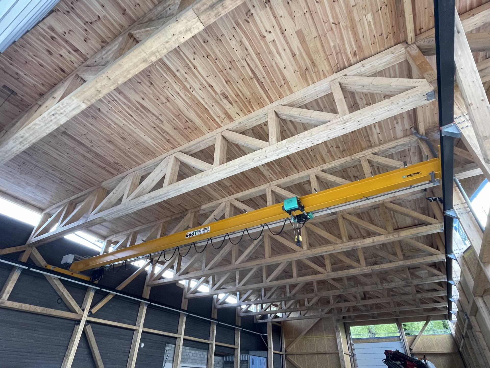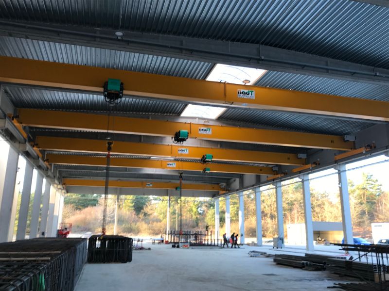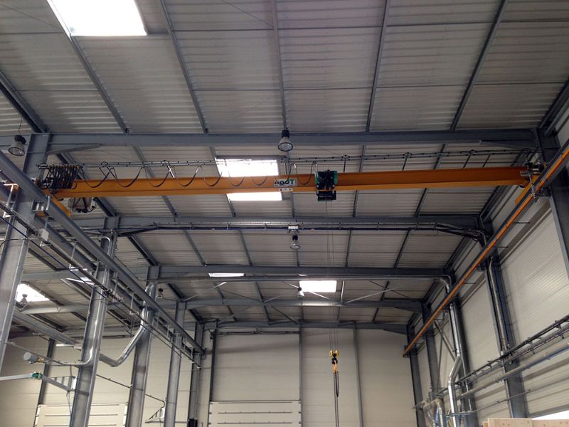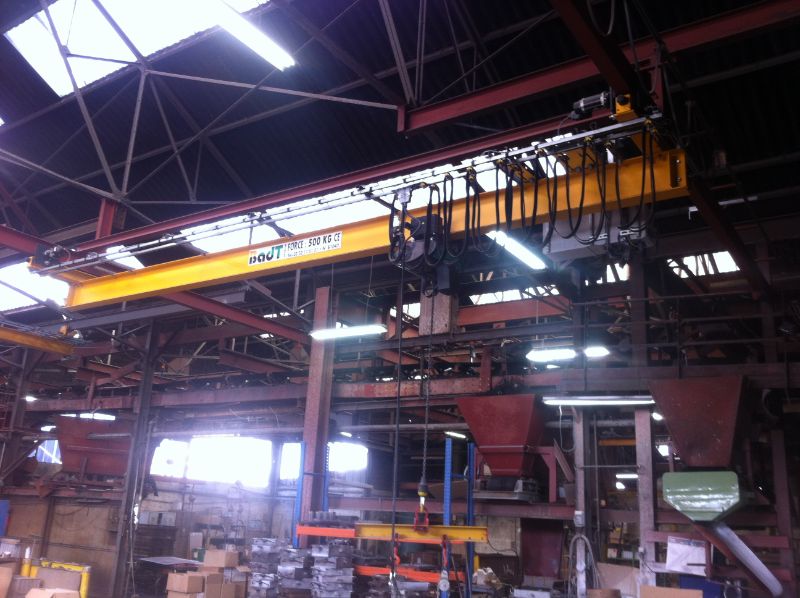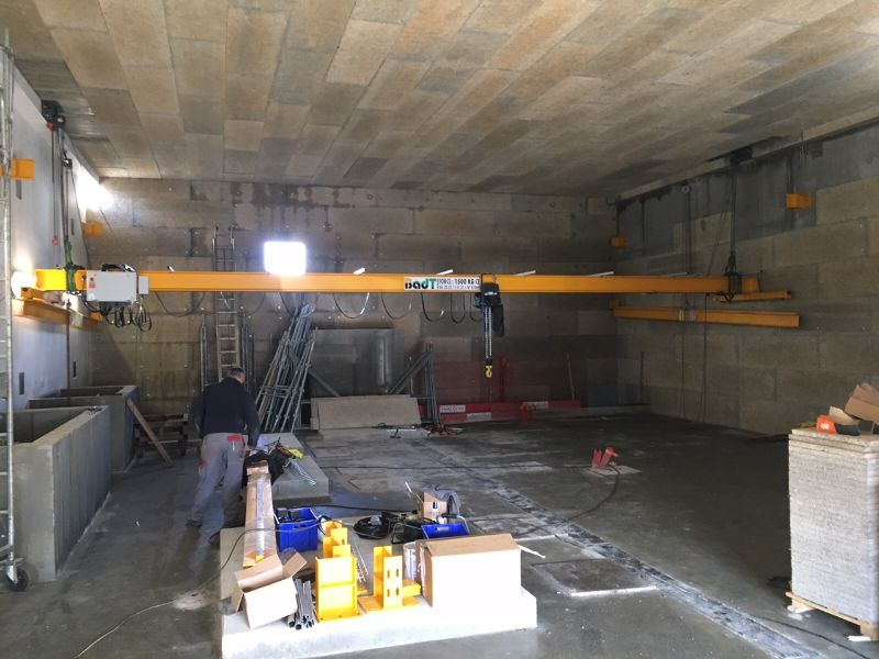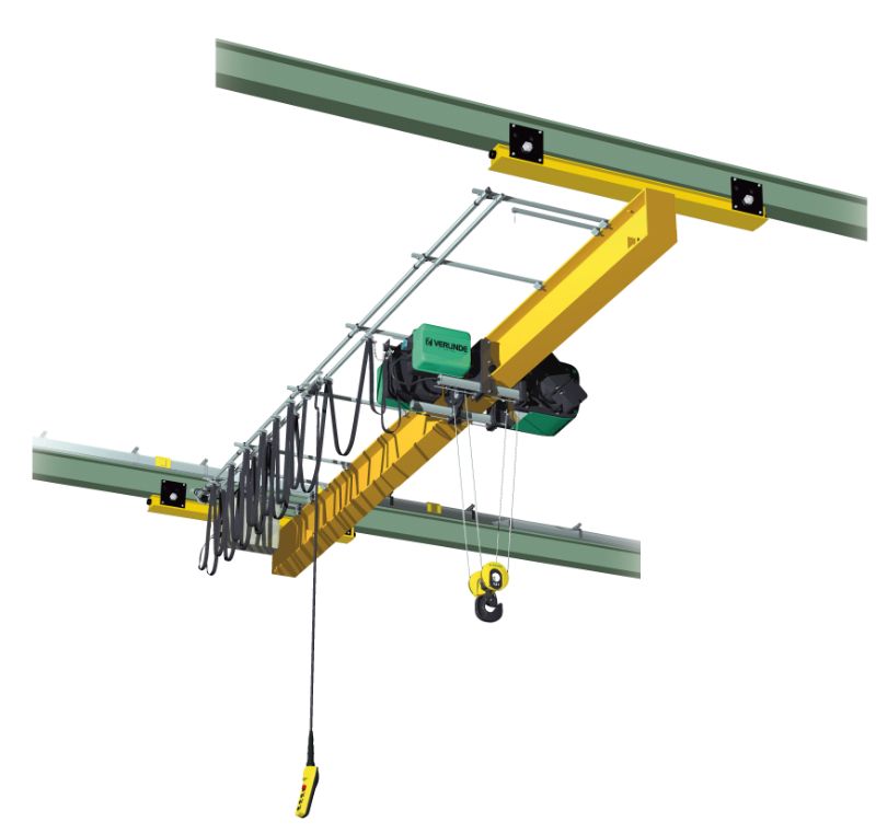 Installation d'un pont roulant suspendu avec palan à câble VT Verlinde en Normandie. BADT LEVAGE possède une large stock de pièces détachées pour les appareils de levage Verlinde.