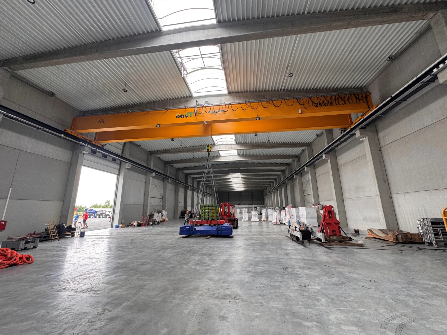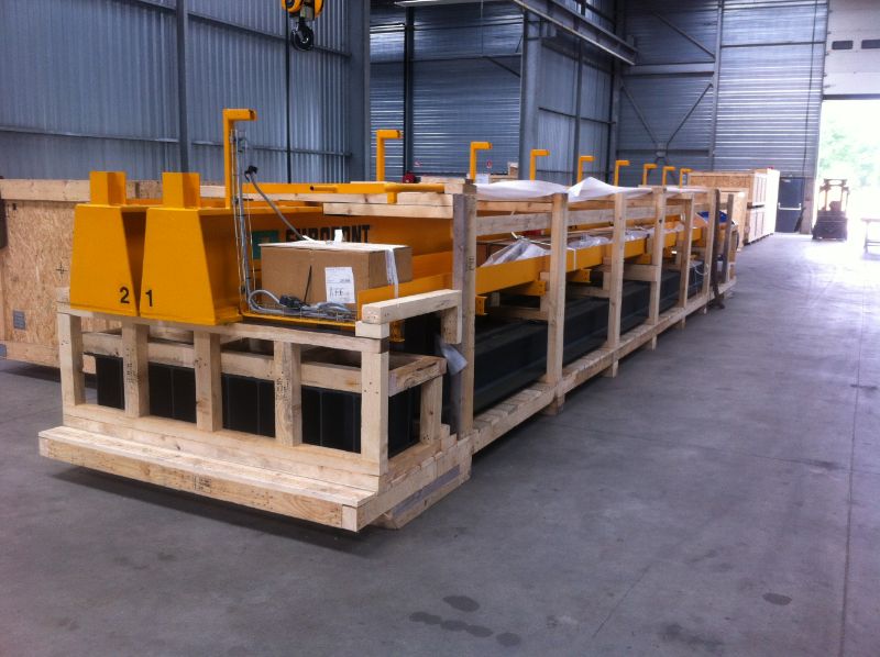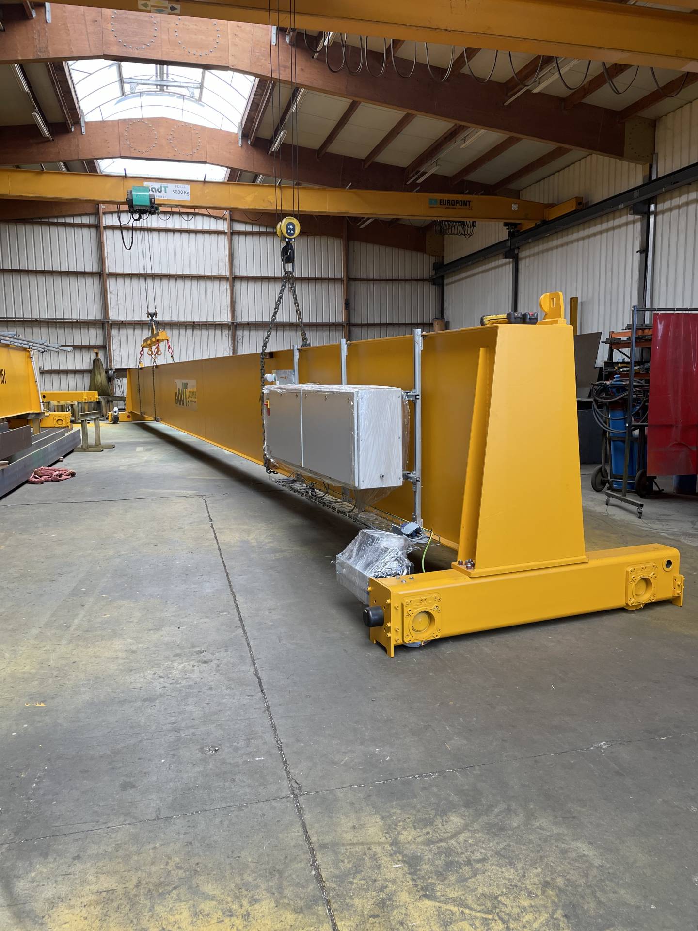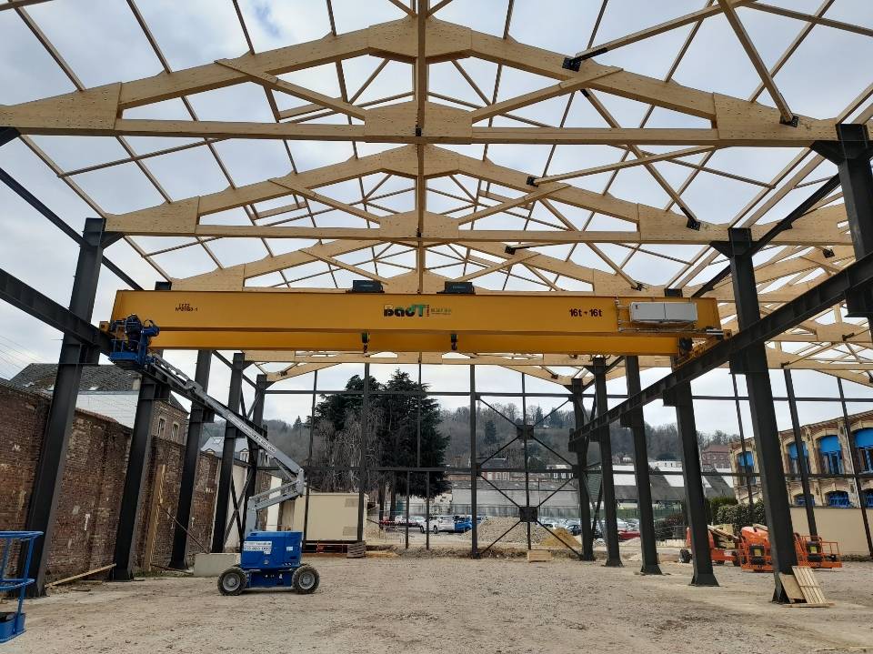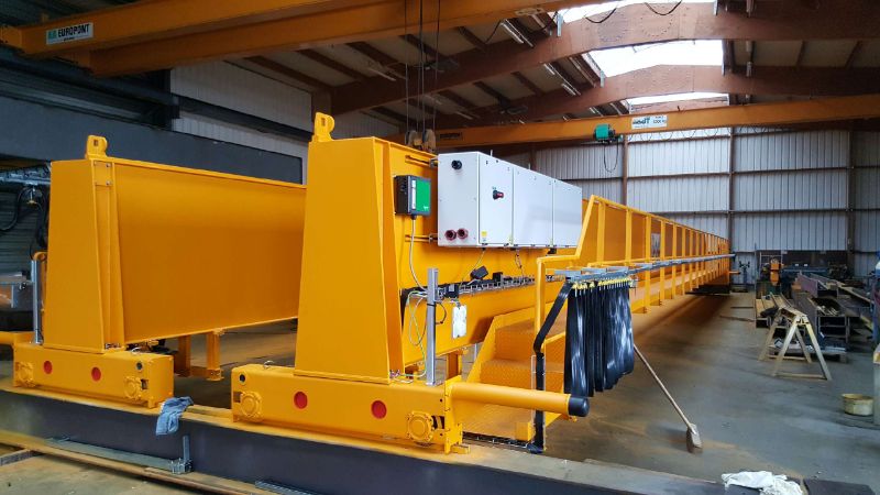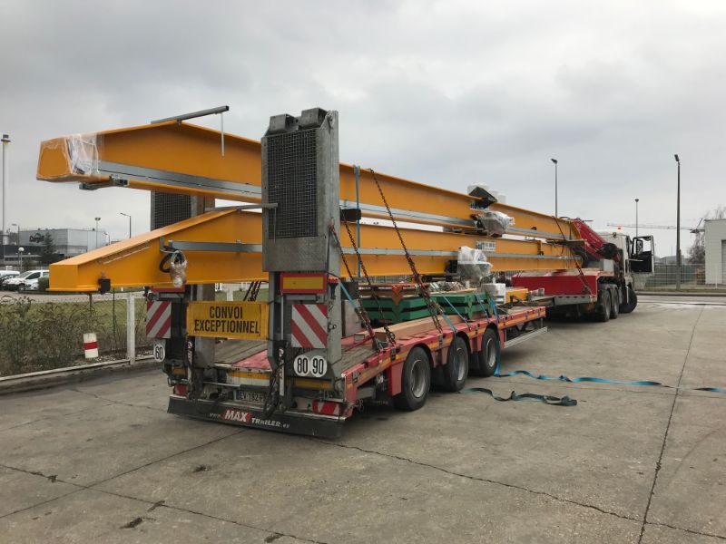 Départ de nos ateliers de Grand Quevilly pour ce maginifique pont roulant bipoutre 25T avec un palan à câble Verlinde VT4.