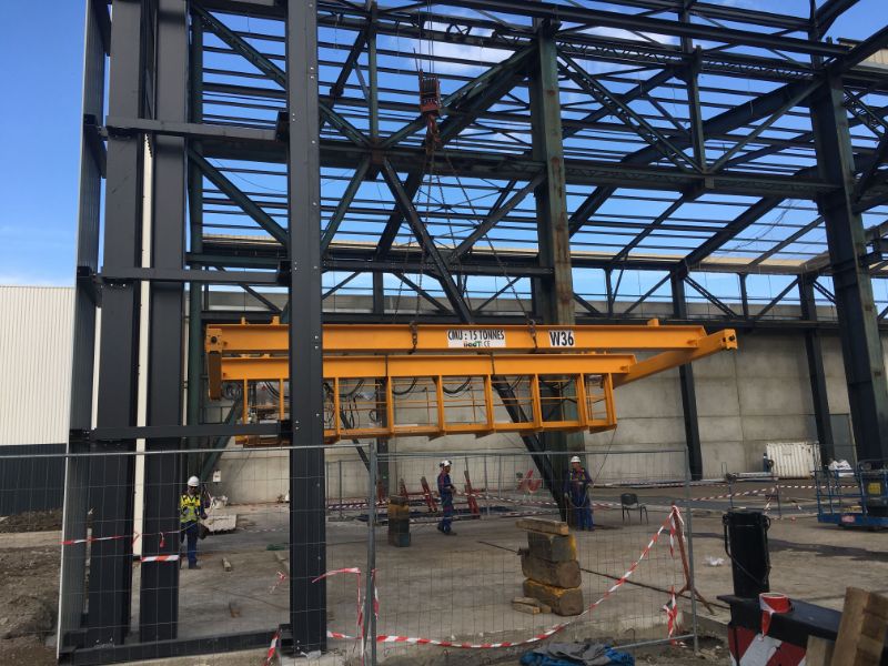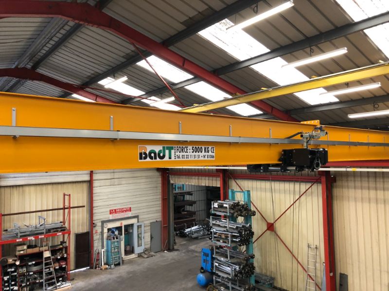 Mise en place d'un pont roulant bi-poutre 4T/11m avec palan à cable VT Verlinde sur la région de Rouen