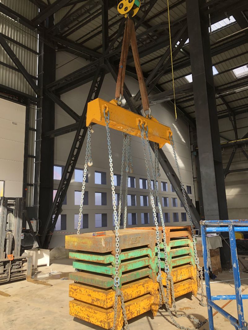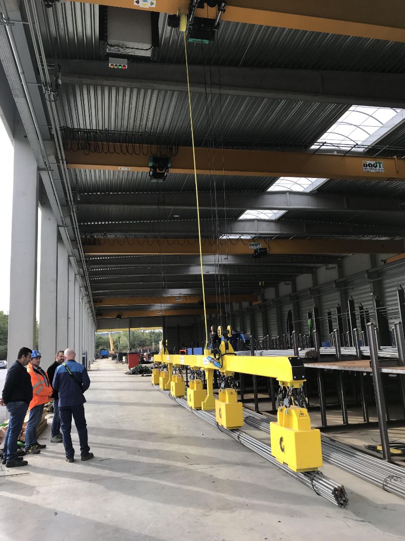 Mise en place d'un palonnier magnétique avec pilotage en tandem de deux ponts roulants 4T avec palan à câble VT.