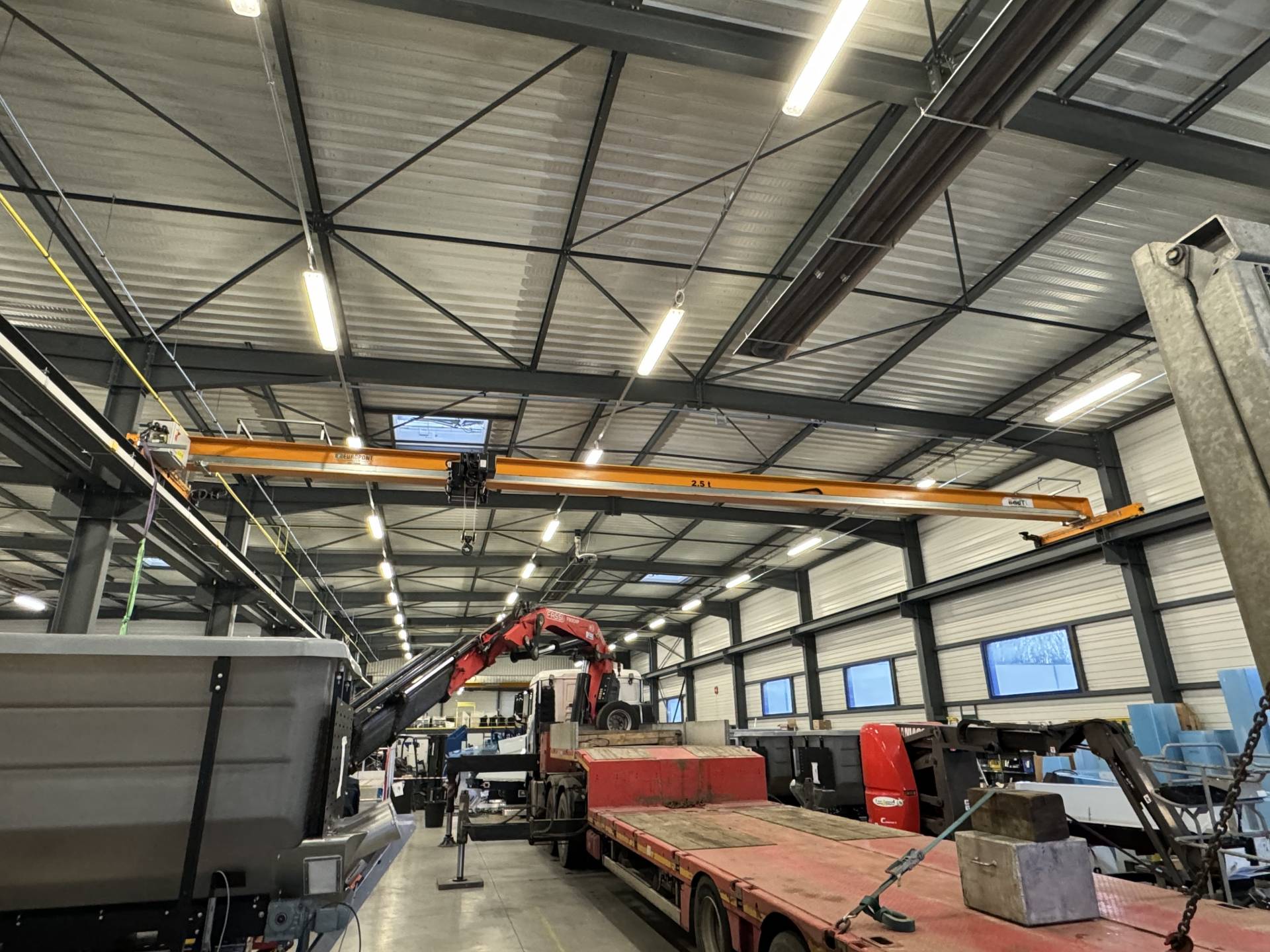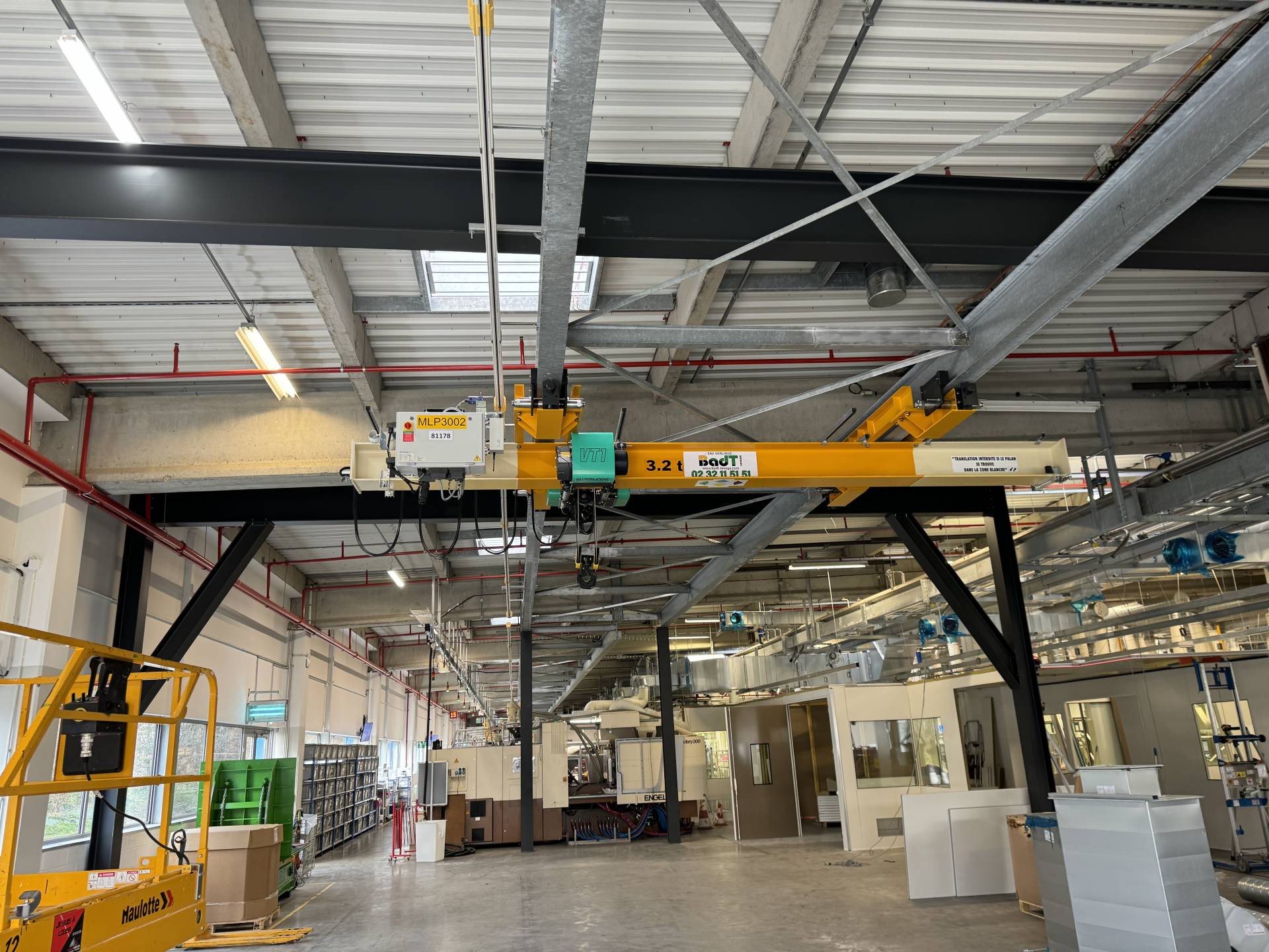 Mise en place d'un pont roulant monopoutre 2,5T - 24m avec palan à câble VT en Normandie (Seine Maritime - 76)