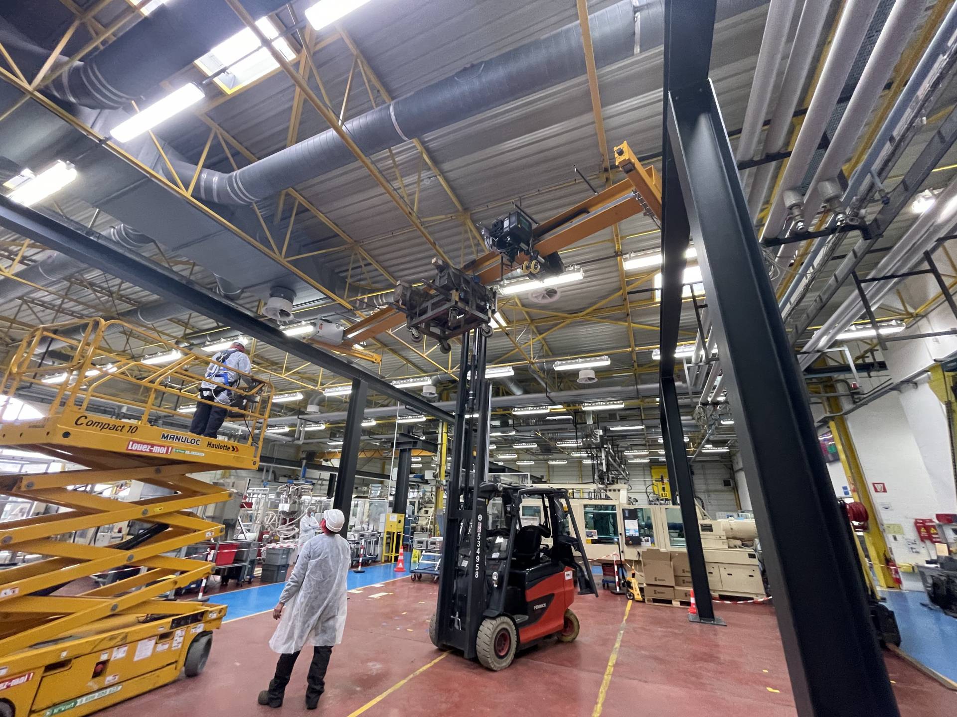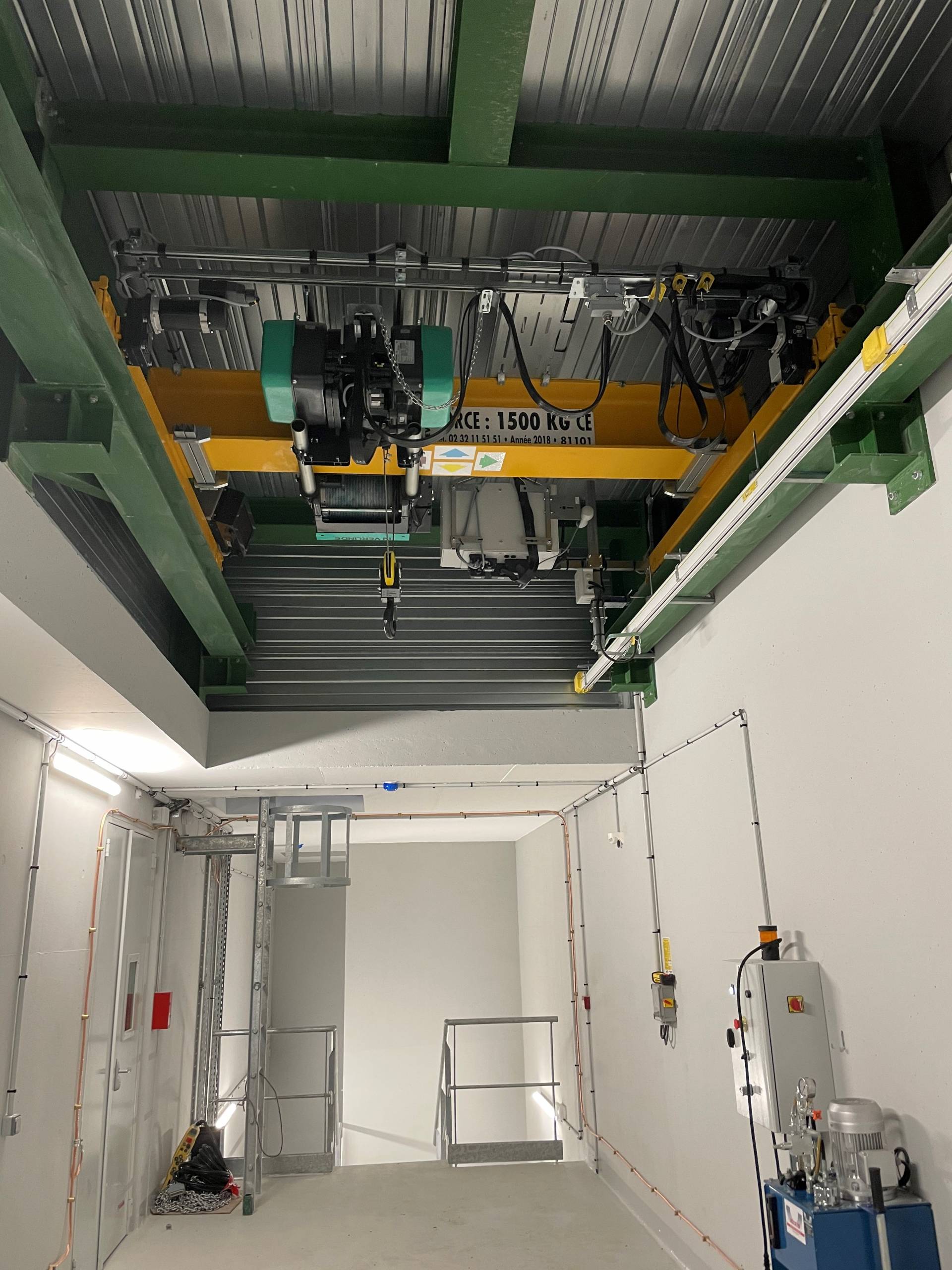 Mise en place d'un pont roulant monopoutre 5T dans l'Eure équipe d'un palan à cable Verlinde VT ( Normandie)