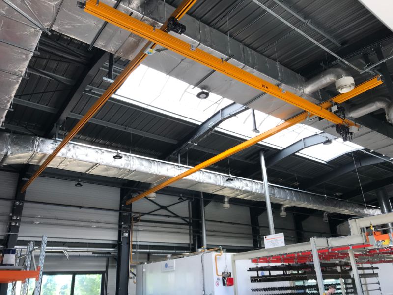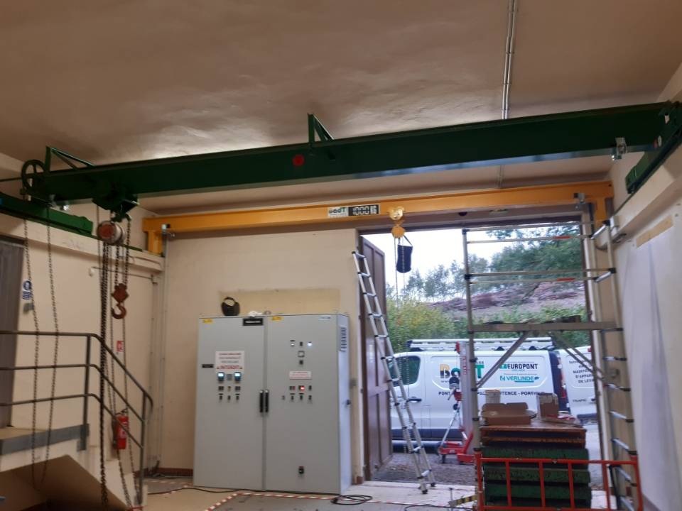Installation d'une poutre roulante suspendu sous trois arcades avec chariots VERLINDE PRD (Eure - 27)